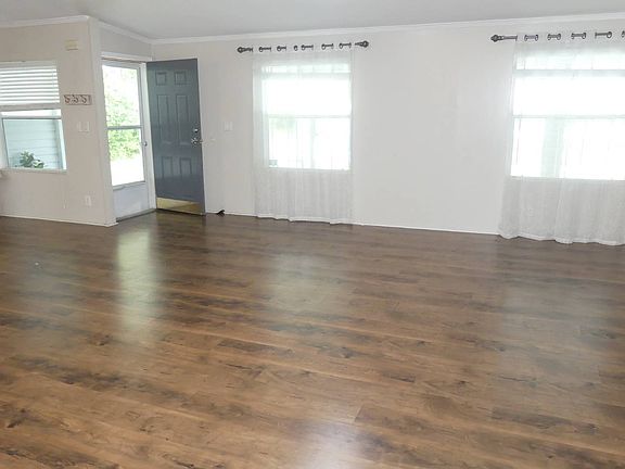 This 1994 Palm Harbor home has been completely remodeled inside. This 2 bedroom 2 & a half bath home has had two additional rooms added, increasing the air conditioned living area to 2177 square feet. The bonus room (21 X 15) can serve as an additional bedroom for your overnight family or friends as well as a den. Then there is a (21 X 22) great room with patio doors leading to a 3 seasons room (21 X 15) complete with vertical sliding acrylic windows and tile floor overlooking a beautiful spacious wooded view. The kitchen has ample cabinet and counter space for the chef in family. This home has an open, split floorplan concept with a separate laundry room. The large master suite includes his and hers walk in closets and the master bathroom has plenty of storage for linens and towels. New laminate floors throughout the living area, master and guest bedrooms and the kitchen, tape and textured walls, updated plumbing and ductwork and new hot water heater. Other features include ship lap wall, a sliding barn door, painted driveway, updated ceiling fans, a large storage shed including electric overhead door, with side by side parking. Home is located on cul-de-sac close to the clubhouse.