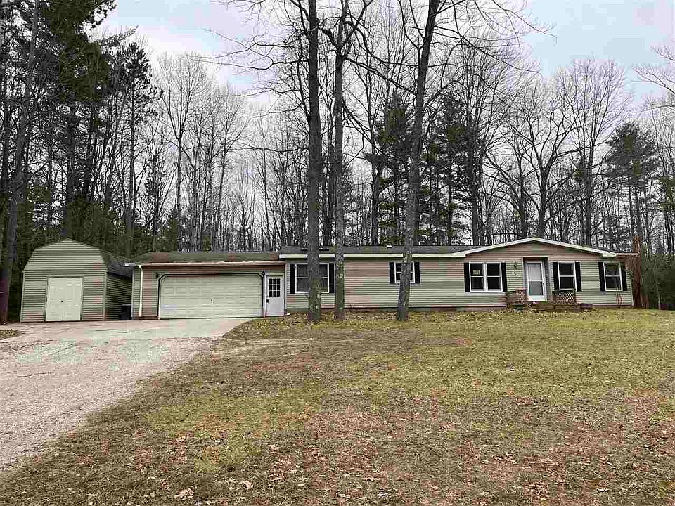 Looking for a country setting with trails on your own property. This is it. Over 10 acres you can hunt on or just sit out on your large back deck and enjoy the sights and sounds of mother nature. This home has an additional storage shed with an upper floor for more storage, plus a lento on the back, (outer side of the garage) to store additional recreational items. Nice area sectioned off in the backyard, (off from the deck) with fencing enclosure and a nice walkway leading to a concrete pad, big enough for a hot tub. This home has central air conditioning and a high efficiency furnace. Nice walk-in pantry off from the kitchen for plenty of additional storage. Breakfast nook or could be used for office space, plus a dining room combo within the large living room. Close to Mullet Lake for boating and fishing.