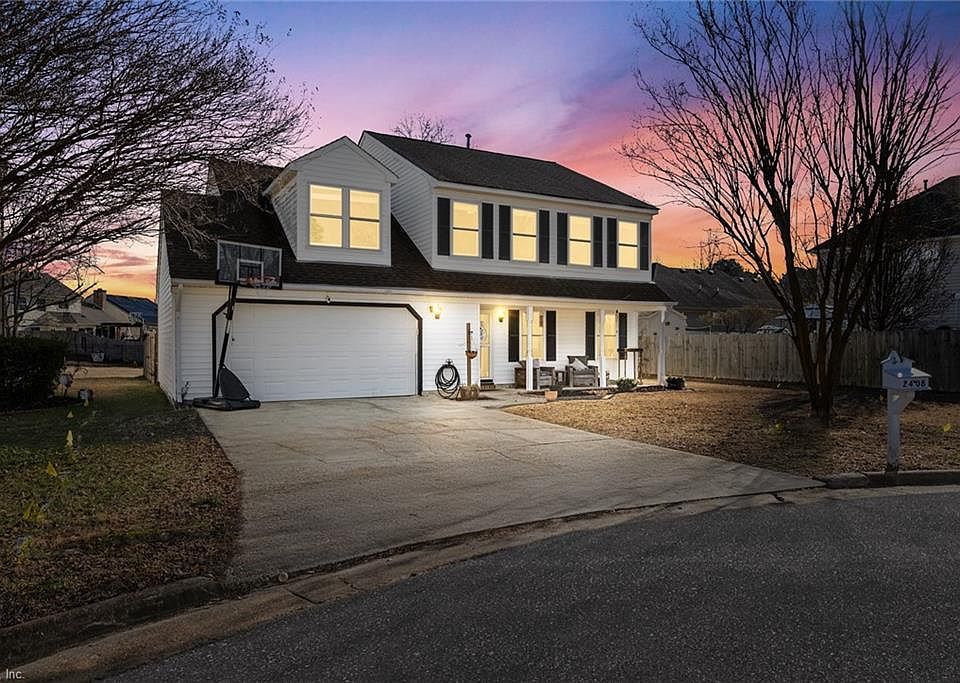 Your dream home just dropped. Ready to snag it? Check out this stunning 4-bed, 2.5-bath 2-story home in Virginia Beach! You’ll love the curb appeal and the modern interior that’s fresh, fun, and 100% move-in ready. The updated kitchen features sleek SS appliances and gorgeous countertops, while the living room’s focal-point fireplace adds cozy vibes. The functional layout makes it easy to entertain while defining spaces. Upstairs, the spacious primary has its own updated en-suite, while 3 other bedrooms (including the loft-style F.R.O.G.) share a modern full bath. Need space to relax outside? Step out onto your completed deck and into a fully fenced yard for all the space and privacy you need. There’s also a detached shed and an attached 2-car garage for extra storage. This home’s the fresh start you’ve been waiting for; schedule a showing today!