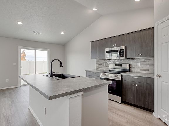 Embrace the comforts of a brand new home in Kuna, Idaho. Turning the key and opening the door will be a pleasure every day in the Palisades 1722. The entryway wows with 9-foot ceilings the moment you enter inside. Three of the four bedrooms are snuggled in the corner to the left of the entrance with quick access to a full bathroom. Straight through the entrance will lead you to the open concept & vaulted kitchen, living room, and dining room. The kitchen is sure to entice any cooking enthusiast to try their culinary skills at the spacious island. The primary suite is tucked away at the rear of the home and offers the promise of rest, relaxation, and solitude. Photos are similar. All selections are subject to change without notice, please call to verify.
