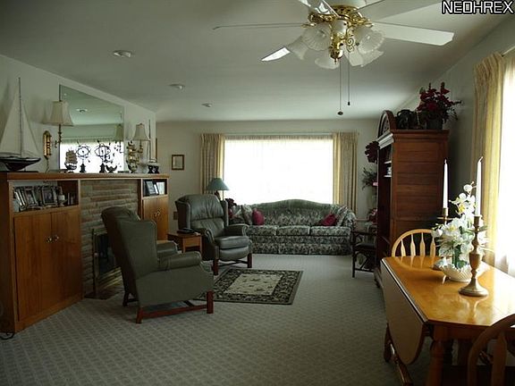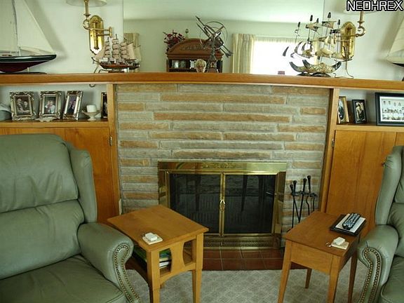 Rare find in Ashtabula Harbor. This move-in condition brick ranch features 2 large bedrooms & 2 full baths. Views of Lake Erie from a large picture window in livingroom. The up-dated kitchen boasts oak white washed cupboards with breakfast bar,Pergo flooring, beautiful appliances including a dishwasher, stove, fridge and micro. Seller will include the washer and dryer. The living room has a stone fireplace and lots of windows. The enclosed breezeway makes a great TV room or office. The bedrooms have hardwood floors and tons of built-ins with so much storage thru-out. The full basement features a full beautiful bathroom, up-dated wiring, newer furnace and hot water tank. The attached garage has storage and workbench. Beautifully landscaped. Nothing to do but move in.