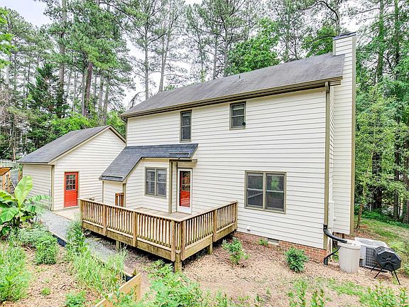 Wonderful Hope Valley area two-story Nature lovers delight. If you want privacy and serenity look no further. Nice lot w/fencing & trees for privacy. Come bring chickens and utilize all the raised gardens. Great location between Duke, UNC,& RTP. Convenient to all. Spacious living room with wood-burning fireplace. Cozy eat in kitchen with granite c-tops newer appliances and breakfast nook overlooking deck. Oversized detached garage with TONS of storage & unfinished space above. Roof 2015. Cul-de-sac street. Total charmer and such a desirable area. Won't last long!
