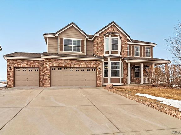 Stunning home backing to Murphy Creek Golf Course with views that will take your breath away! This open concept plan flows seamlessly from the moment you enter. The gourmet kitchen with granite countertops, a double oven and solid wood cabinetry with crown molding is picture-perfect. Steps away you'll effortlessly transition into the grand family room with vaulted ceilings, abundant natural light and a gas fireplace, surrounded by windows that overlook Pikes Peak and a world class golf course. A separate office space, solid wood flooring, spacious dining room and a bonus bedroom and bath are also found on the main level. Upstairs you'll find 3 additional bedrooms, an extra bathroom and your laundry room suitably located. You'll find a simply massive master suite with a luxurious 5 piece bath, closets to match, and those same outstanding views! Enjoy your massive yard with a private alcove and fire pit, a well-designed covered patio with outdoor television, and tons of room for outdoor recreation! 3 car garage and a full unfinished basement for future improvements! Murphy Creek is a community with world class golfing, driving range, tennis, club house, and an outdoor pool, perfect for families of all sizes! Welcome home!