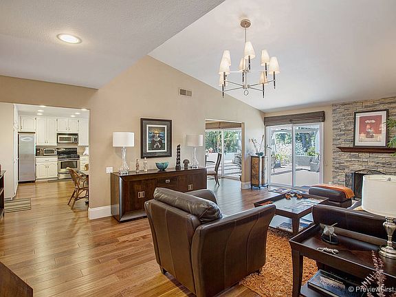 NOW ACCEPTING BACK UP OFFERS! Single story, ranch-style home located on quiet cul-de-sac. Open floor plan with 3 bedrooms, 2 bath, approximately 1561 sqft and Saddleback mountain and city panoramic views! Completely remodeled with hardwood flooring, custom recess lighting, custom window coverings, vinyl dual pane windows, crown molding, 7 baseboards, custom front doors, and 6 panel doors. Remodeled kitchen w/ Silestone counters, stainless steel appliances, eat-in kitchen and separate dining room. Family room with re-faced fireplace. Large private back yard w/ custom stone hardscape, covered patio, and no one directly behind. Close to Montanoso Rec Center with pool/spa, gym, and kids center. Walk to Valyermo, Christopher and Montevideo park/elementary. Optional Mission Viejo Lake privileges. No Mello Roos or HOA. GREAT home that won t last long!