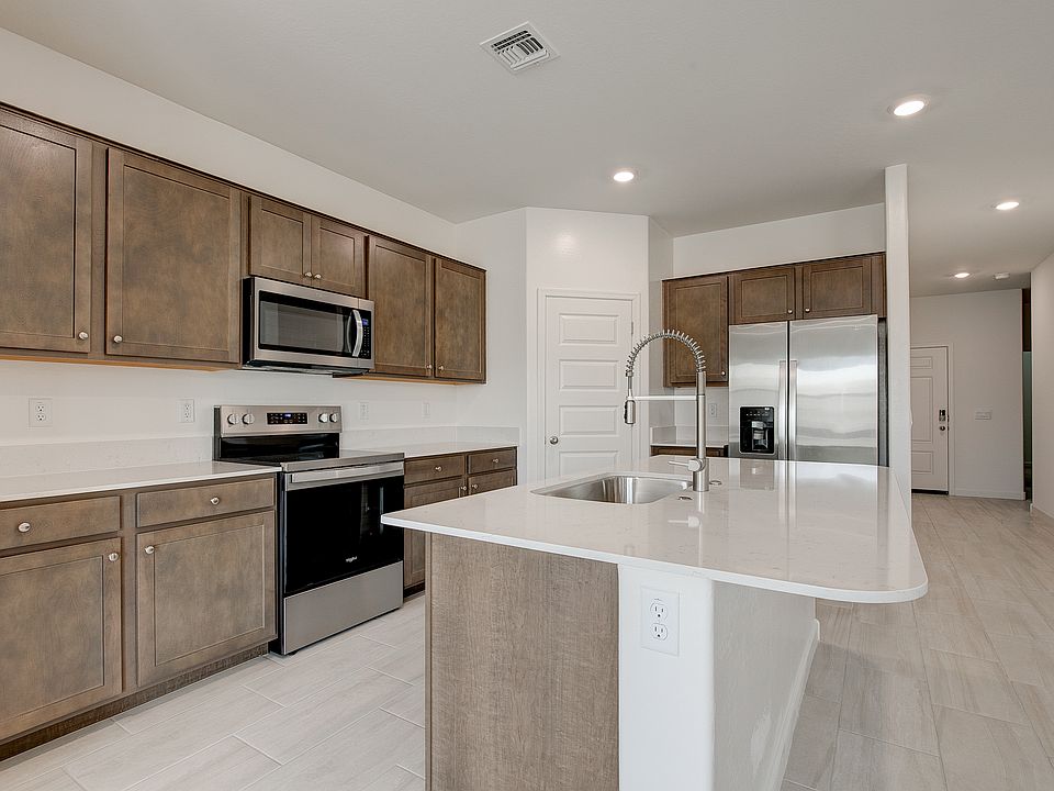 This one is ready for you and is stunning. Just finished and on a corner with a large lot! 4 bedroom split floor plan home has large closets, 2 bathrooms, huge laundry room with washer and dryer included. On the back is the great room with dining and open concept kitchen. Primary bedroom on the back of the property with other bedrooms toward the front. Upgraded kitchen has beautiful grey cabinets shaker style with walk-in pantry and all the upgraded stainless steel appliances included. Quartz countertops and large kitchen island. Home is located down the street from the community park for basketball, volleyball and a huge dog park