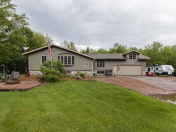 The property that has it all! 30 acres of beautiful wooded land. A remodeled home with tons of amenities! A detached garage - to die for, wait until you see it. Location - outskirts of town, close to Hewit Texas school. 30 acres of land - currently in Managed Forest CLOSED for approximately another 25 years. The home was built in 1969, the current sellers bought the home in 2006 and since then have done a ton of improvements. The kitchen has been remodeled. HOMEMADE - solid cabinets. Kitchen appliances stay. (Electric-built in stove does not work). Kitchen has an abundance of counter top space and cabinets but in case that is not enough room there is a large walk-in pantry with glass door. Island is complete with gas stove, stool seating, and built-in cook book shelving. Dinette off the kitchen with a large picture window to enjoy the country views! There is also a formal dining room with a patio door to step out and enjoy the deck off the back yard. The formal dining room also shares a gorgeous 2-way stone fireplace with the living room! Large living room with built in shelving.2 bedrooms on the main level, including the main suite. The main suite has a private bathroom complete with a HEATED jetted tub. The main bathroom has been nicely updated with double sinks and newer fixtures. The main floor consists of 1800 square feet. Beautiful 3 panel, knotty Alder doors through out. Main floor laundry (hook ups in lower level as well) Lower level has one bedroom, a bonus room and a family room waiting to be finished to your liking! The home has newer Kolbe windows, newer siding and roof, 200 amp electrical service, option of wood heat or gas heat, and so much more! The attached 2 car garage has loft storage. The detached garage has a loft area that could be used for storage or a game room. It is a 32x64 garage, heated and insulated. In floor heat, floor drains, hoist will stay, cabinets will stay. Brand new broiler system and 3 overhead doors. This detached garage nicely matches the home with newer vinyl siding and stone. There are two LP tanks on the property, one is 1000 gal and that is owned and will stay with the home. The second one is 500 gal and is leased. There is an outdoor wood burner, which will heat the home and the detached garage. Or the sellers can heat it all with the LP, if they so choose.