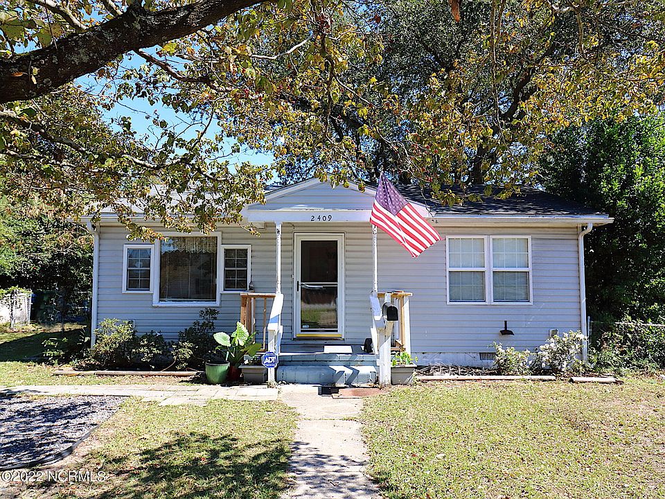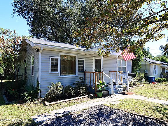 Adorable 1950s-built Sunset Park cottage that has been expanded to provide 3 bedrooms and 2 full baths. The updated and enlarged one level floor plan allows for a formal dining room/den and a separate great room. You will love putting all this fantastic space to use. Two of the bedrooms and a full bath are situated at the front of the home as part of the original floor plan. The 2007 addition at the back of the home added a generous primary bedroom with en suite bathroom and spacious closet, plus an adjacent full laundry room. This split bedroom floor plan would work perfectly as a ''mother-in-law'' suite. Note the beautiful wood floors. Relax outside on the 12 x 16 back deck under gorgeous mature trees in your private fenced backyard. Store all your tools or recreational toys in the shed. Distinctive Sunset Park is convenient to the Port of Wilmington, Novant Regional Medical facilities, Legion Stadium, and Greenfield Lake Amphitheater for all your favorite music artists. Easy to view, this traditional home awaits a new owner.