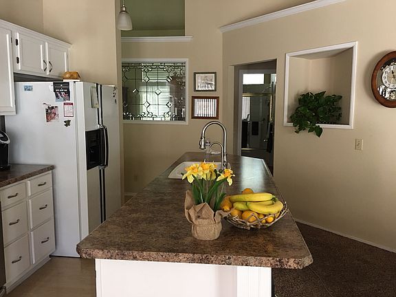 Move in ready, Meadowcreek home with all the amenities you are dreaming of. Three car garage with pull through to large concreted area. Covered patio off kitchen for morning brunch or afternoon BBQs. Vaulted ceilings with crown molding create spaciousness throughout the home. Adorable and functional kitchen opens to living room. Breakfast nook, dining space and family room too! Newer roof. Close to park! Come take a look!