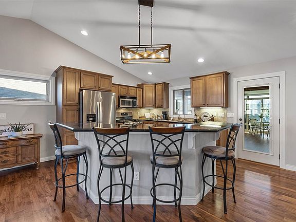 Welcome to this stunning Coralville home! This open-concept ranch walkout boasts vaulted ceilings, elegant walnut floors, and granite countertops. Start your day with a cup of coffee or wind down in the evening on the inviting 4-season porch or on the new deck with a fixed gas line for the grill. The primary suite is a retreat with a double trey ceiling, an en-suite bath featuring a jet tub, and a spacious walk-in closet. The lower level offers a large family room, two additional bedrooms and a full bath. Never be without power with the whole home generator. Enjoy comfort, style, and a fantastic layout in this beautiful home!