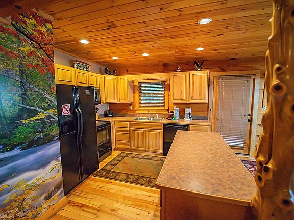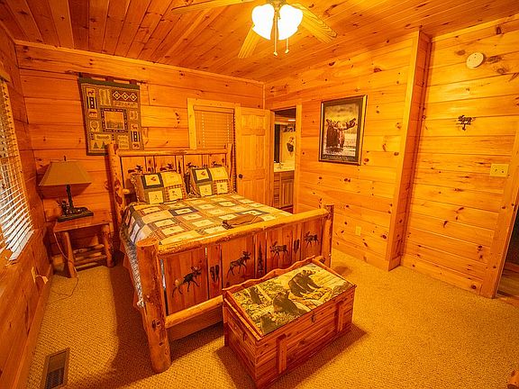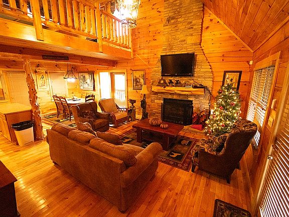 Ahh Sweet Mountain Air. Amazing opportunity to purchase a well maintained cabin with a fantastic location. The cabin was recently stained in 2019 and will be sold as is, but is turn key and ready to use as a permanent residence, second home, or a perfect overnight rental. The cabin features a very large, flat parking area sitting on a large private lot. Enjoy seasonal mountain views and a large wrap around, screened in porch. Inside you have a soaring fireplace, beautiful handcrafted pillars, large bedrooms, and great bonus space for you or your guests. This log cabin has plenty of room to sleep up to 10 guests. Once you enter you will be amazed by the craftsmanship, spaciousness, and feeling of being right at home. Enjoy wide, easy-access roads, a large almost full acre lot, seclusion of
