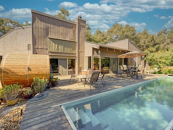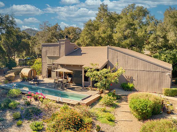 Peace. Tranquility. Beauty. Escape to this one of a kind, rarely available Ojai masterpiece nestled in all the finest nature has to offer. Travel up the long driveway to your private paradise and enter this exquisite residence, a combination of luxury, comfort, and the functionality of additional bedroom/bath ideal for work from home, home schooling, or guest quarters. Abundant natural light filters in from all direction, filling the home from the beamed cathedral ceilings to the rich wood floors. Gorgeous kitchen featuring custom cabinetry and top of the line Bosch appliances opens up to large dining area and comforting family room with views of endless beauty, sparkling pool, and outdoor dry sauna. Retire for the evening to your spacious main sleeping quarters complete with private patio, fantastic walk-in closet, and elegant bath. Spacious secondary bedroom with adjacent remodeled bath complete the main living areas with the bonus of additonal room off the garage with its own full bath and private entrance! Explore the outside, taking in the multiple entertaining areas, magical park like surroundings, walking paths, incredible views and sparkling swimmers pool. No better place to escape the madness than 2409 Burnham. After all, don't you deserve it?