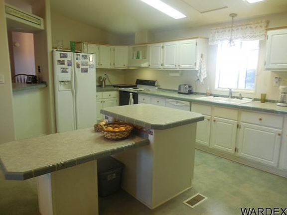 Immaculate 3 bed 2 bath home on 1.22 acres with amazing views! Large open kitchen with center island & breakfast bar. Plenty of counter & cabinet space. Spacious living room leads to dining area. Open floor plan for easy entertaining. Gorgeous fully drywalled 468 sq ft AZ has been fully permitted and can double as a game room, office, or family room. Master bedroom w walk in closet. Master bath has garden tub for relaxing. Split floor plan for privacy. Both guest bedrooms have large closets. Full guest bath! Laundry room with sink and stackable washer and dryer that stay! Home has an awesome front porch that runs full length of home and is perfect for gazing at the mountains. Lot has been fully graded and rocked and front yard has pretty low maintenance landscaping. Large storage shed/ workshop. Fully fenced. Plenty of room for a pool or build a large garage! Tons of room for RV, boats, and all your river and desert toys. No HOA and enough room to spread your wings. Minutes to the Colorado River, Lake Mohave, casinos, hospital, and shopping. Move in ready. Pride of ownership from the moment you approach this property! Buyer to verify utility, fld plain & sq footage