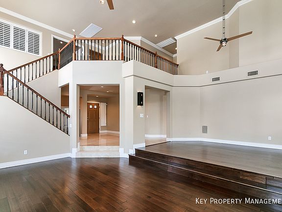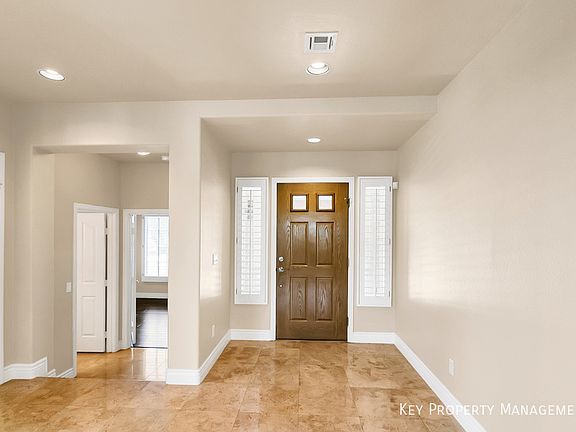This stunning corner-lot home features vaulted ceilings, stone, manmade wood, and carpet flooring, plus custom stone accents throughout. The island kitchen includes all appliances, and there's a bedroom/office/den downstairs for added flexibility. Enjoy surround sound in the primary bedroom and family room, along with shutters, ceiling fans, and a covered patio overlooking your private pool and spa. Located in a desirable Green Valley neighborhood, this home includes pool and yard service and offers a 3-car garage. Don't miss this one! Pool