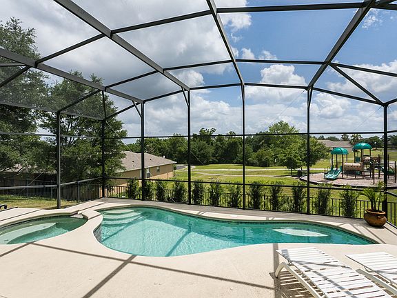 Situated in a gated community and on a premium lot, this four-bedroom three-bath home has over 2500 square feet of living space and a gorgeous screened in POOL and lanai overlooking greenspace and conservation. Enter into the grand foyer with volume ceilings and open living and dining. Walk further into a separate spacious family room, dinette area and kitchen, equipped with 42" cabinets, stainless appliances, and closet pantry. The bedrooms are split three ways, the first near its own bathroom, providing a perfect guest area. The other two bedrooms are separate and share a bathroom, which can also service the pool. The master suite is large and features sizable windows, tray ceiling, walk-in closet, and an ensuite bathroom with everything needed for pampering, including a walk-in shower, garden tub, and dual vanities. All of this, as well as, an indoor laundry room and 3 car garage. Sought after community is walking distance from the elementary school and close to parks and Apopka's Jason Dwelley Recreational Complex.
