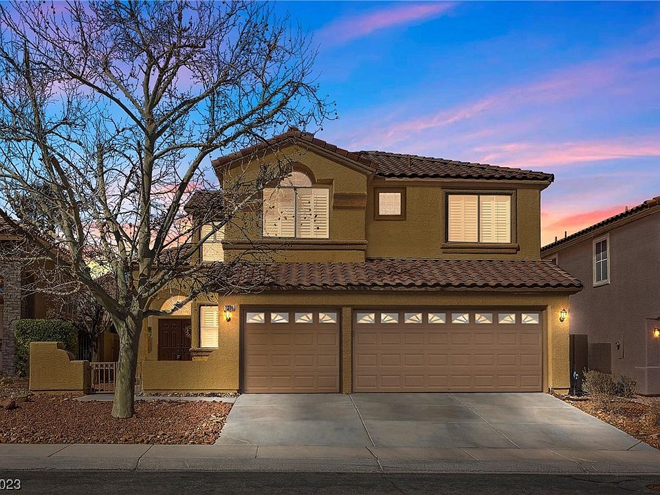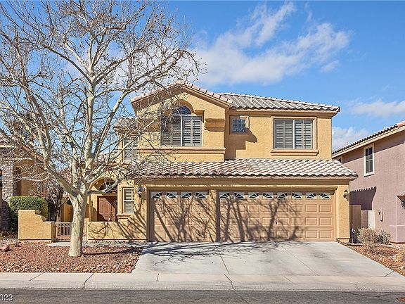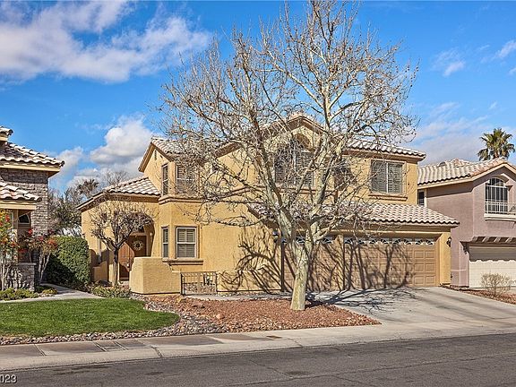 LOW HOA, NO SID/LID! Beautiful home, over 2700 square feet, vaulted ceilings, located in a quiet Summerlin neighborhood, close to great schools. 5 bedrooms, 3 baths, 3 car garages, with an in-ground pool and spa. Downstairs bedroom and a full bath. This home has two fireplaces, one of them located in the master bedroom. Plantation shutters throughout the house, custom built in closets, very spacious walk-in pantry, brand new stainless steel sink and faucet in the kitchen. Reverse osmosis water system, garage have built in cabinetry. Covered patio in the backyard, balcony off the master bedroom. Don’t miss it!