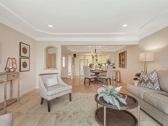 Feel one with nature and enjoy spectacular sunrises from the expanded back patio of this very special Rossmoor home. This Carmel features a rare setting free of any other buildings or rooftops creating a pristine vista of Rossmoor's beautiful surroundings. A large front patio means you'll have two spacious tiled patios from which to enjoy our fabulous weather. The remodeling of this lovely coop is apparent as you open the glass paneled front door and step across the gleaming tile floors. The Kitchen features white Kitchenmaid cabinetry with glass fronts and stone countertops. Detailing like an expanded entryway and cutouts exposing the view lends a feeling of openness throughout the home. The bathroom has gorgeous tile floors, stylish white cabinetry and stone counters and a stunning spa quality shower. Notice additional touches like coffered ceilings, dual pane windows, recessed lighting, an inside laundry and more. Move right in and enjoy Rossmoor - a premier active-adult community.
