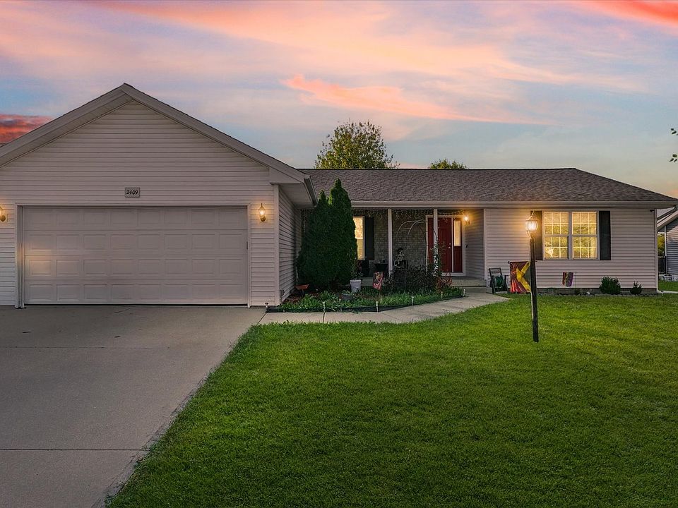 Welcome to 2409 Goodfield Drive, a well-maintained home located in Urbana's desirable Landis Farm subdivision. This thoughtfully designed three-bedroom, two-bath residence with inviting spaces that make you feel at home the moment you arrive. Step inside to an open-concept layout highlighted by vaulted ceilings and abundant natural light. The spacious living room serves as the home's centerpiece, featuring a gas fireplace and a seamless flow into the dining area and kitchen. The kitchen is practical, offering stainless steel appliances, an island breakfast bar, and generous cabinet and counter space - perfect for cooking, entertaining, or everyday family meals. The primary suite has ample room for a king-size bed, a walk-in closet, and a private bath featuring dual vanities and a step-in shower. Two additional bedrooms share a full hall bath and can easily serve as guest rooms, offices, or hobby spaces. A convenient laundry area and an attached two-car garage add to the home's everyday functionality. Additional highlights include energy-efficient windows, central air conditioning, and a well-maintained exterior with classic curb appeal. Whether you're looking for your first home, downsizing, or simply seeking a comfortable and well-situated property, 2409 Goodfield Drive combines practicality, style, and location in one perfect package. Schedule your showing today and see why this Urbana gem stands out for its thoughtful design, peaceful setting, and welcoming neighborhood.