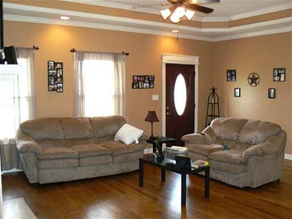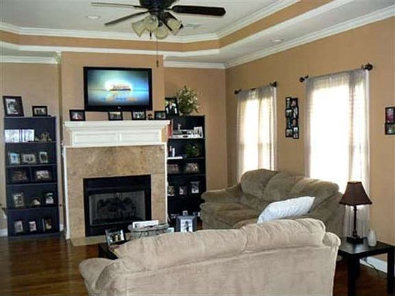 Beautifully landscaped yard with luscious grass and shrubbery! Upgraded privacy fenced back yard with fire pit. Home features open floor plan with cozy fireplace and flows in to dining and kitchen areas. Rich hardwoods accent the floors. Rooms are large and spacious and great closet space. Master bedroom features 2 walk in closets, huge bath with jetted tub, separate shower, double sinks and dressing vanity! Freshly painted inside, too. 23 ft deep garage for boat or toys! $1000 carpet allowance.