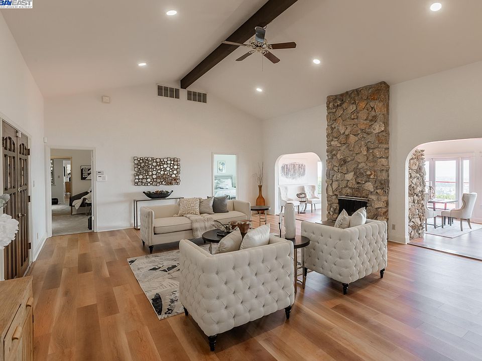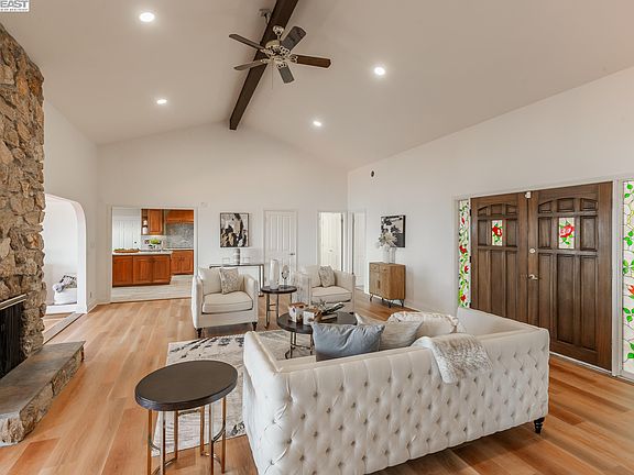 Fantastic opportunity to own your dream home! Nestled on a cul-de-sac lot in charming neighborhood, this home offers plenty of living space for all your needs. 4 Bedroom 2 bath home. Spacious, bright and cozy living room, featuring Vaulted ceilings and Stone fireplace. Engineered wood floors! The Chef's updated kitchen is perfect space for cooking, featuring granite counter, cherry cabinets and sleek stainless steel appliances, 2 Decks with 180 degree views of the Bay too! Close to Lake Chabot, trails, shopping and schools. Just Beautiful throughout, come by soon!