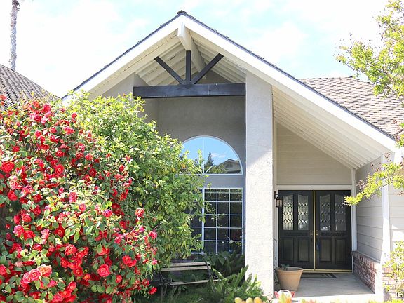 This beautiful property in The Oaks has a lovely front yard with a double door entrance. Lots of natural light and bay windows. Efficiently designed kitchen with ample storage and counter space. Beamed, vaulted ceiling, country styled family room with brick fireplace. Spacious master suite with garden tub, separate shower, double vanity, walk in closet with built-ins, and private patio. This home has a large backyard with fruit bearing trees and a charming rose garden. Walking distance to Haggin Oaks Park and Pin Oak Park. Come and see it, this won't last!