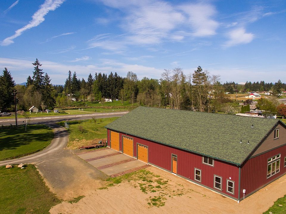 CALLING ALL SHOP LOVERS! Envision this...6000 sq ft custom shop with approx 2200 sq ft framed in for 3 level new custom home to complete to your taste AND an additional adorable farm house perhaps for another family member or to live in while you complete your dream home all on a level fenced and gated 3.5+ acre lot in Ridgefield! This is a rare find! A MUST SEE!