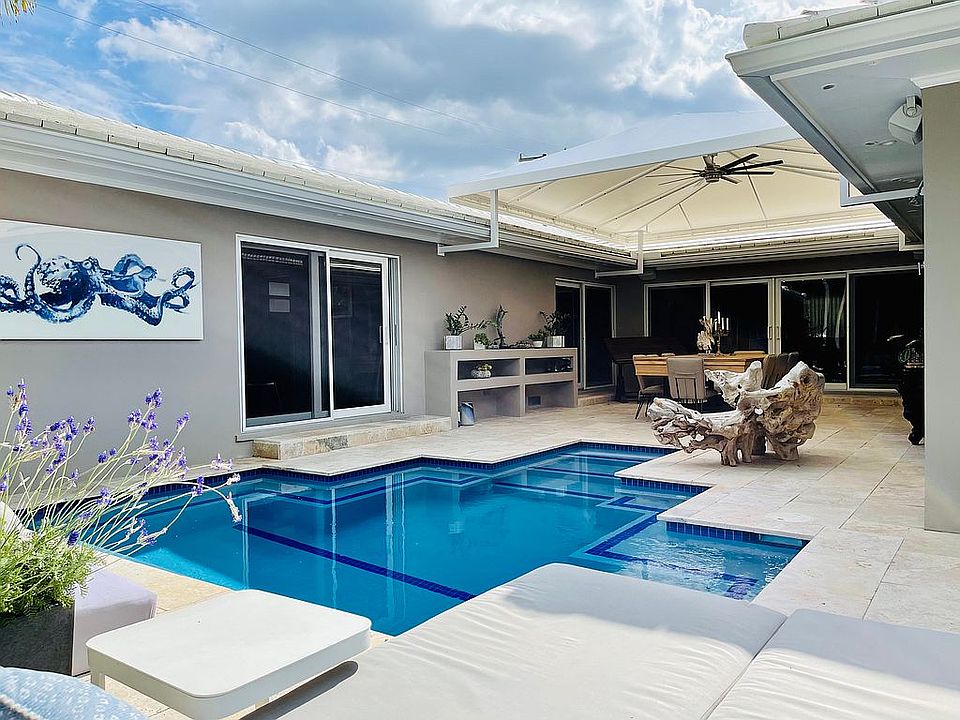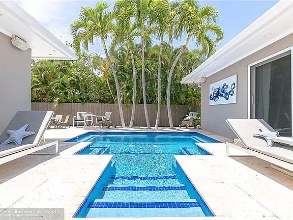 This home completed renovated in 2019 is located on one of the best streets in the gated and sought after neighborhood of Sunrise Intracoastal. Excellent floor plan for todays lifestyle. The home has a large office that could be a 4th Br. Unique rear loading garage that has been converted to a party room and delightful private courtyard with a beautiful pool. Includes 25kw Generac generator. Walk to beach, Birch State Park and Galleria. Bayview school district. A must see ! It will go fast !!! DO NOT CALL !! Text only . Thank you .