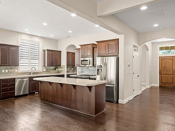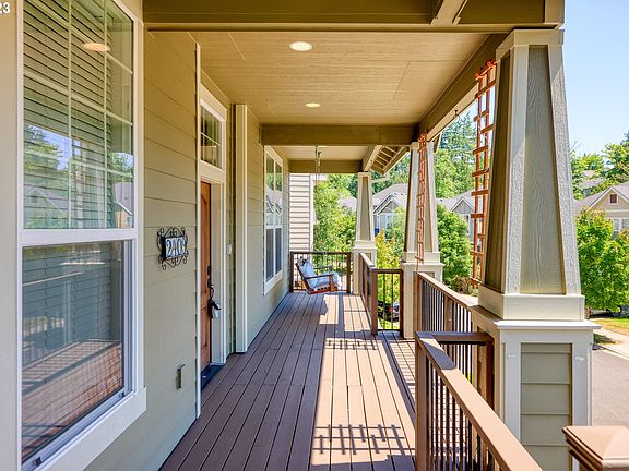 Beautiful home across from Bonny Slope Elementary! Bedroom with French doors and a full bathroom off the main living area. Kitchen boasts gas stainless steel appliances, large island with an eating bar, butler's pantry, and granite counters. Formal dining room off the main entry. Informal dining area leads out to the serene backyard that is an oasis of privacy and greenery. Backyard features low-maintenance turf yard, play structure, and raised garden bed. Living room features built-ins surrounding the a cozy gas fireplace. Step out onto the large covered deck in the front with a porch swing that is perfect for entertaining and enjoying the outdoors year-round. Solar panels are owned and paid off, 4.8 kw system. Garage includes overhead storage and a shop/storage area plus an extra deep closet. Media room upstairs has built-in power for a media system. Washer, dryer, fridge included! Minutes to walking trails, parks, dining, and more! Quick commute to Nike, Intel, or downtown.