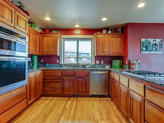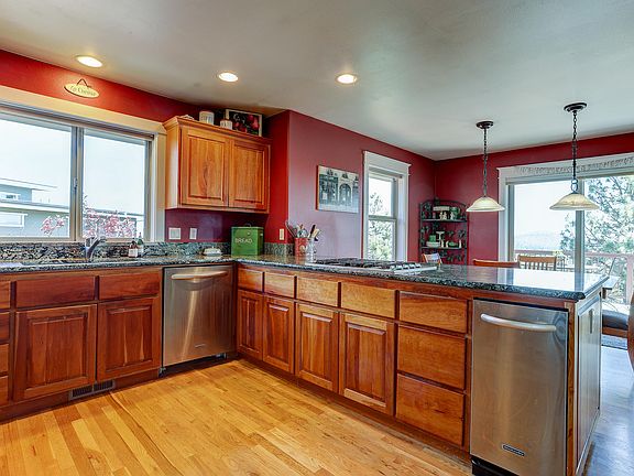 Situated at the end of a quiet cul-de-sac, this traditional home in the coveted Hillside Park neighborhood offers privacy and serenity. Upon entering you'll be taken in by the view and abundant natural light. The great room features a vaulted ceiling, expansive windows, gas fireplace, and kitchen with granite counters and eating bar. The dining area with deck access has a tremendous easterly view, perfect for sipping coffee while you watch the sunrise or entertaining in the evening. The main level master with view boasts an en-suite bath with dual sinks, jetted tub and shower, and deck access. An additional bedroom, bathroom and office complete the main level. Downstairs is a great communal space with a family/bonus room, 2 bedrooms, full bath, and covered deck. A path next to the lot leads to Hillside Park with an off-leash dog area and playground. With 4 bedrooms, an office, living room and family room, plus a 3-car garage with south facing driveway, this home checks all the boxes!