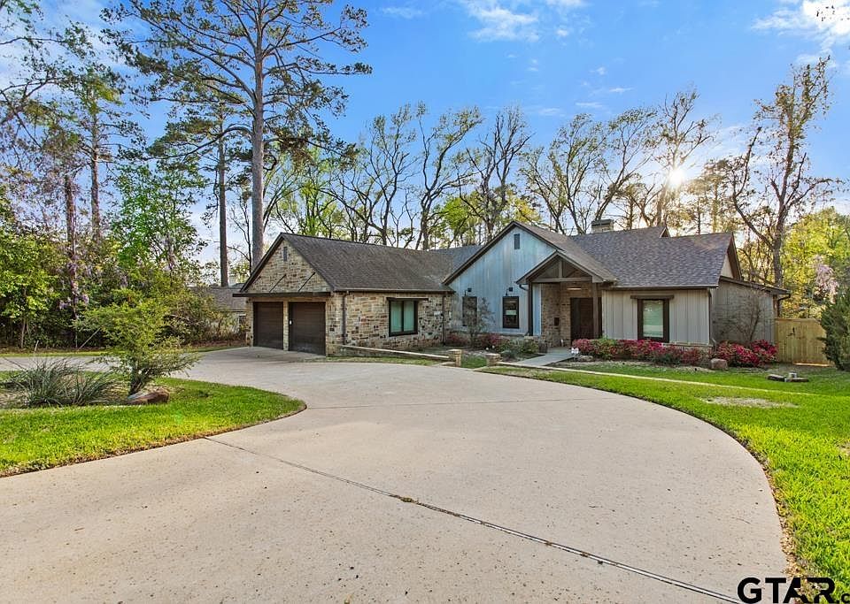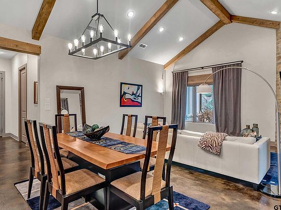 Sleek and stylish, this modern home in a well established neighborhood will blow you away with it's attention to detail. As you enter, make sure to notice the beam over the doorway. Open concept with kitchen, dining and living in one space. Kitchen boasts high-end six-burner Thermador gas cooktop, pot filler, wall oven, built-in microwave, dishwasher -- all other appliances are Kitchen Aid stainless steel appliances. Custom cabinets are substantial and decorative. Lots of room to entertain or cook on these quartz counter tops. Island seats your guest while you cook. Neat backsplash looks like fabric and is so unique and beautiful. Living room is spacious with stacked stone fireplace gas log fireplace, stained and polished concrete floors, and soaring vaulted ceiling with those gorgeous beams! Off the kitchen you'll find a half bath with distinctive sink, mud area with a fabulous built-in desk for your home office, dog room with doggie door and storage, and utility room. Owner's Retreat is just that! Large bedroom has tray ceiling with inlaid wood, lots of natural light, and the spa bath to die for. Double vanities, private water closet, amazing free-standing tub with designer tile surround, large walk-in shower, and towel warmer. Two nice-sized guest bedrooms and a full Jack and Jill bath are on the other side of the house. Enjoy cool evenings on the back covered patio. Sit around the fire pit; or entertain from your outdoor kitchen with gas grill, refrigerator, and sink. Back yard with wood and stone fence is great and feels very private for being in town. Fence perimeter has mosquito mister to keep you comfortable. Oversized two-car garage has extra storage closets as well. Solid core doors. Tv's in all bedrooms will convey. High end finishes and fixtures. Gorgeous wood details. Circle driveway. Amazing inside and out! You will LOVE this one!