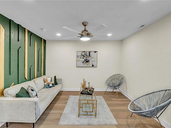 Stylish accent wallCozy carpeted bedroomsWelcoming front porchStatement countertops