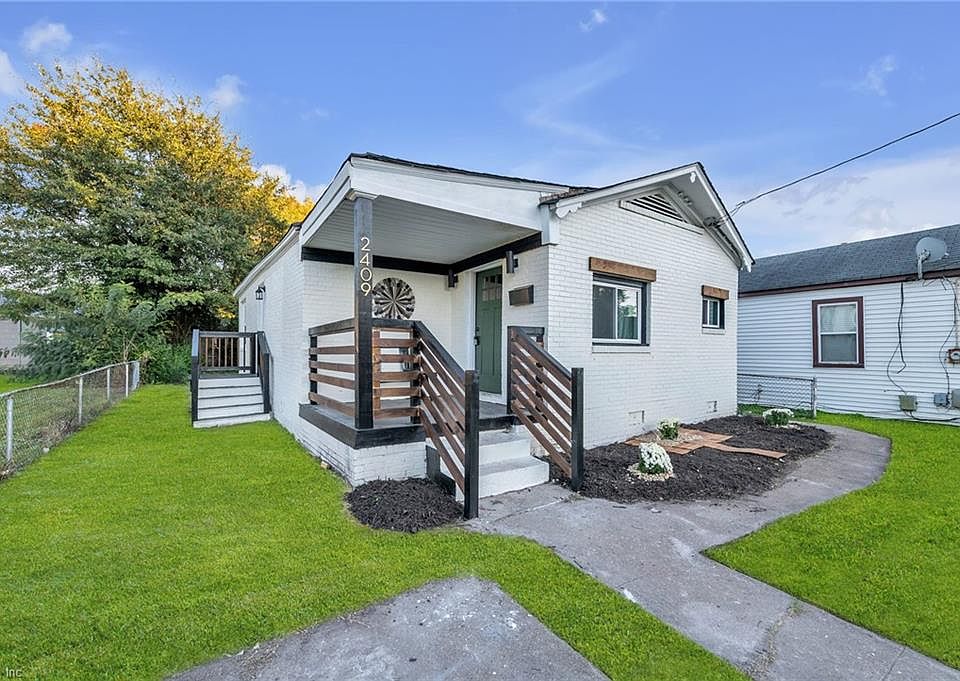 Welcome home to this beautifully updated brick ranch! A welcoming front porch sets the tone, leading inside to a bright living room with a stylish accent wall. The kitchen is a true centerpiece, featuring stainless steel appliances, statement countertops, an island with overhang for seating, and convenient access to the backyard. Also enjoy an additional detached theater space with a pergola! Bathrooms showcase modern tile details and updated fixtures. Luxury vinyl flooring runs throughout the main living areas, with cozy carpeted bedrooms. Ideally located just minutes from Norfolk Naval Shipyard, Naval Medical Center Portsmouth, Historic Olde Towne Portsmouth, and I-264.