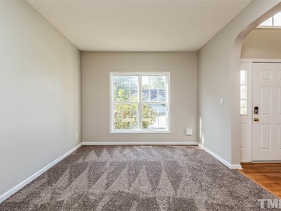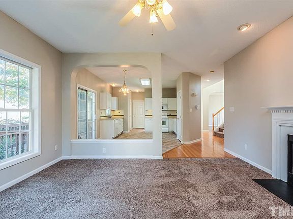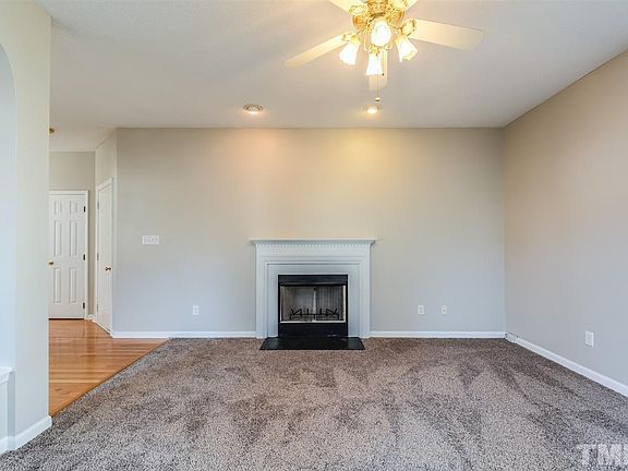 This Raleigh two-story offers hardwood flooring, a fireplace, and a two-car garage. Upgraded features include fresh interior paint, new carpet and vinyl in select rooms, and a new HVAC. A community pool, park, and clubhouse are part of the Bryarton HOA.
