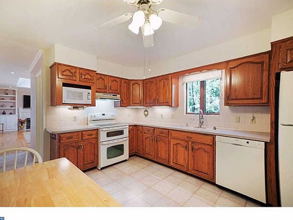 This meticulously maintained home, located in Chalfonte, includes many updates. From the front door you enter to a first floor with beautifully maintained hardwood floors throughout. To the right is a large formal living room made bright by large windows with a southern exposure. Close by is a formal dining room large enough to serve family, relatives and guests. Family chefs will appreciate the full sized kitchen featuring corian countertops, a double sink, newer dual oven range, Bosch dishwasher, great storage and beautiful cabinetry. Walk from the kitchen into a large family room featuring vaulted ceiling with skylight and ceiling fan, and of course a brick fireplace. Sliding doors lead to a terrific 3 season paneled porch. Gardeners will appreciate the backyard which includes a fantastic brick patio and a raised flower bed. The master bedroom includes a walk-in closet and fully remodeled master bath with tiled shower. Three additional bedrooms share a remodeled hall bath. Basement has additional space great for a variety of purposes plus additional utility storage space. Most everything in this home is new or newer including windows, appliances and utilities. This home has been maintained to very high standards!
