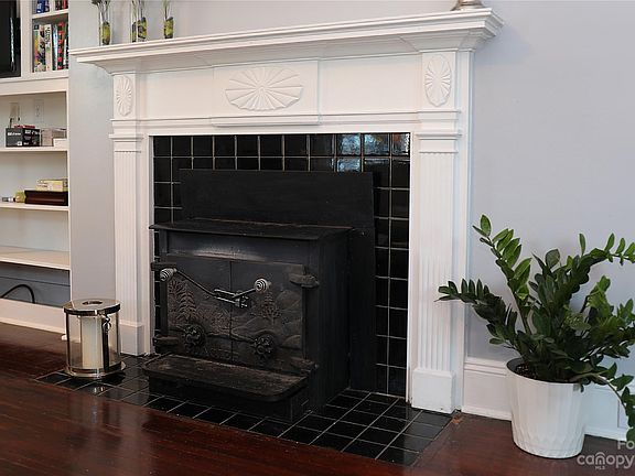 Nestled among a canopy of mature oaks in sought after Chantilly is this charming cottage ready for you. This home is a quaint mix of old and modern. It boasts original wood floors, antique wood/metal doorknobs, built in cabinets in the living room, decorative moldings, a cozy wood burning stove and an arched doorway into the dining room. Both the kitchen and bathroom were fully renovated in 2022. The home was fully painted and upgraded lighting was added. The upper area of the home is heated and serves as the main bedroom with office nook. Ceiling height is below 7' in over 50% of the space but per the appraisal at purchase the home is 1431 sq ft with 3 bedrooms. Enjoy your morning coffee in the back yard oasis. This fully privacy fenced area is perfect for entertaining/relaxing. Chantilly living provides convenience. Only minutes drive to uptown Charlotte & within biking/walking distance to the neighborhood park, Midwood shops/restaurants/bars. The home is sold as is.