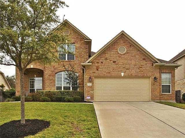 Absolutely stunning and located in the attractive community of Steiner Ranch! Gorgeous home with soaring ceilings! Four bedrooms, three and a half baths. One bedroom with private bathroom. Separate office with French doors. Great room, game room, plantation shutters, gutters, granite counters, crown molding, wood floors, tile, tile back splash, tray ceilings, extensive windows, huge backyard backing to greenbelt. Walk to school! Enjoy the luxury of the Steiner Ranch amenities! No need to leave home!