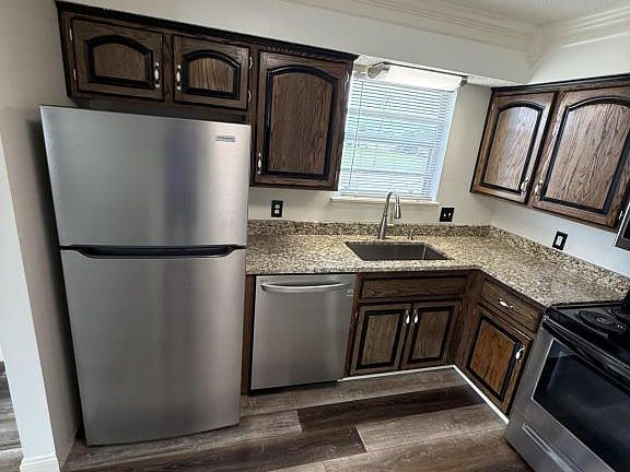 Newly remodeled second-floor apartment featuring granite countertops, new LVP flooring, fresh paint, ceiling fans in every room, soundproof walls, and private balcony. Trash, lawn service, snow removal, and more are included.