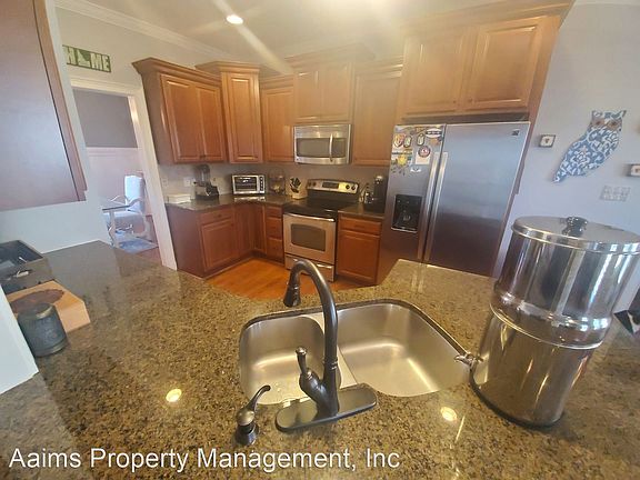 This gorgeous 4 bedroom, 3 bathroom home is conveniently located close to everything! Only 5 minutes from the shopping centers of Fayetteville and restaurants, 10 minutes from Fort Bragg, and in the Terry Sanford School District. The neighborhood has a gated entrance. Home has custom touches throughout including high coffered and vaulted ceilings, beautiful hardwood, tile, and carpeted floors, granite countertops, custom cabinetry in kitchen and laundry room, upgraded stainless steel appliances, and tile back splash. Large master with vaulted ceilings and master bath includes double vanities, separate shower and jetted tub, his and hers separate walk in closets, and separate room for toilet. Bonus room over garage has large closet space and full bathroom. Laundry room located downstairs. Fully fenced in backyard with storage shed. Non-refundable Pet Fee of $250
