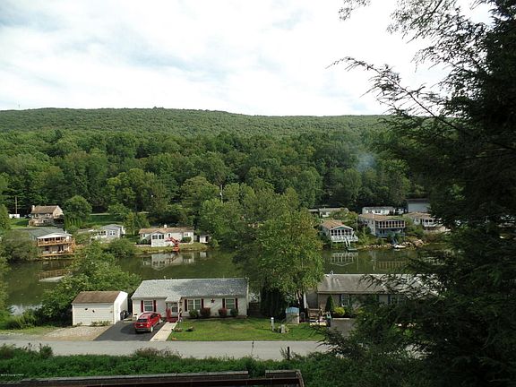 Stroll down this country road to BLUE MOUNTAIN VILLAGE one of the exclusive COMMUNITIES in the POCONO MOUNTAINS this hidden gem overlooks the LAKE .fishing row boat a public dock. Home has 2 bdrm. 1bth. central air ..and also clubhouse.Manufactured home financing avail.
