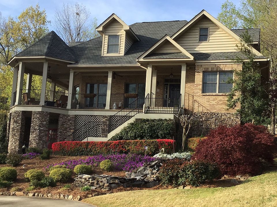 BREATHTAKING VIEWS AWAIT IN THIS GORGEOUS CUSTOM BUILT WATERFRONT HOME WITH WRAP AROUND PORCH. Features 3 BR plus Office, 3 1/2 Baths, 2 Slip Open Boat House, newly renovated Kitchen w/stainless steel gas stovetop, granite/corian countertops, crown molding, recessed lights, 9ft ceilings, hardwood floors throughout. master suite with walk in closet, Jacuzzi Tub, Separate Shower, Partial Basement w/full size bath, lake fed irrigation and professional landscaping. Boathouse has newly added roll-up doors, new lifts and Trex decking. CALL TODAY
