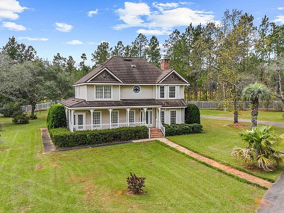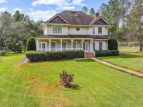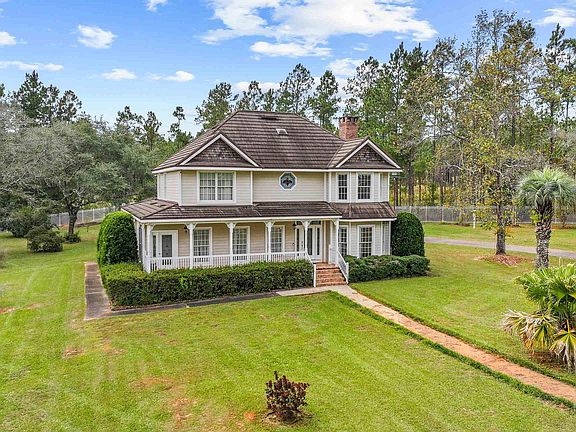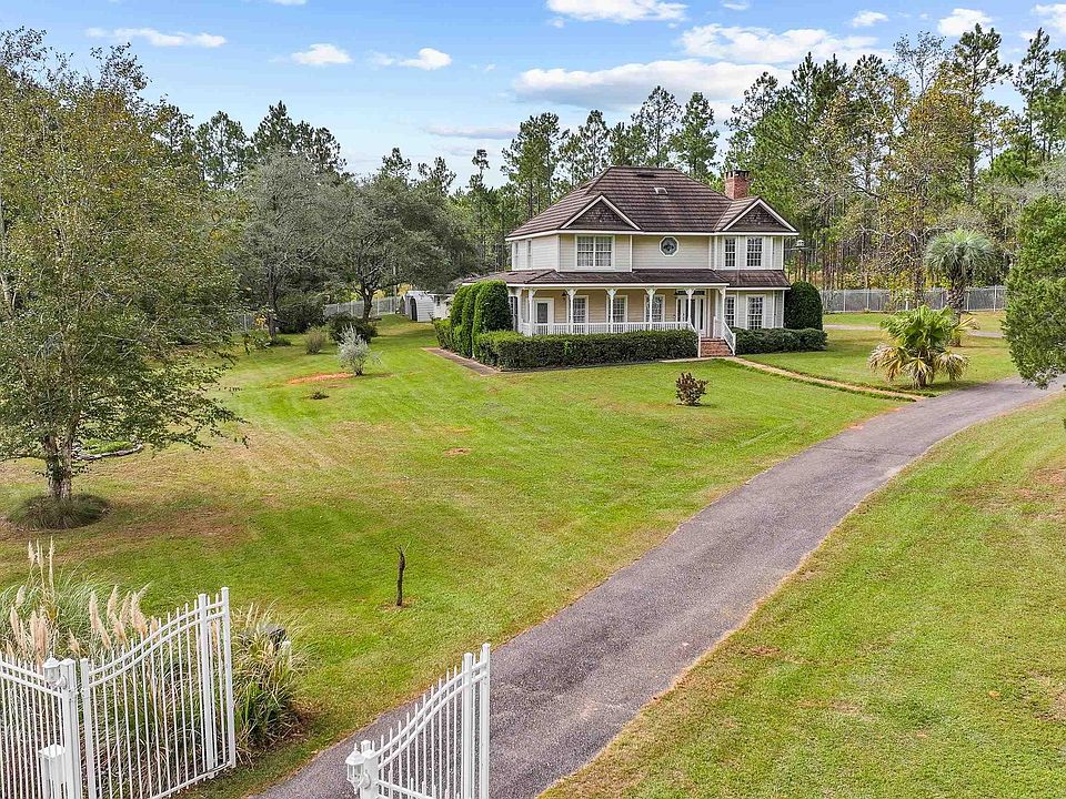 Welcome to this enchanting house on a hill! This Victorian home on 1.6 acres has so many charming features! Nature surrounds this home on three sides. It’s fully fenced & a gardener’s & hobbyist’s dream. The 3 car detached garage has an office & built in storage. The exterior is hardi board & the roof is a 50 year metal roof. One bedroom & full bath on the main floor. Three more bedrooms & 2 baths are upstairs. A new bonus attic space, just completed, is on the 3rd floor. Two bright heated and cooled sunrooms & an extra living room are on the main level. Hardwood floors are dominant everywhere in this home. The only carpet is brand new on the curved stair case & in the new attic space. The primary bedroom is oversized & has 2 custom walk in closets. The kitchen was remodeled with new custom cabinets & has an Advantium convection oven microwave, granite countertops & breakfast bar. The family room has an electric fireplace & a built in wooden shelves wall ready for your treasures. The current owner has taken great care of the bountiful! blueberry bushes & a Queen Lace Japanese maple tree. There are all kinds of beautiful trees, a gardening shed, & raised garden beds. Garden plumbing even runs to the gardening shed & to the adjacent gardening sink. The enclosed sunroom off the kitchen has a -brand new- built in gas grill & vent hood. This sunrooms create seamless flow between the inside & outside making for easy entertaining. The washer/dryer remain. The detached 3 car garage workroom includes a separate side exit door. This very large work area has a mini split for cooling the newly completed garage office and garage storage room. None of the detached garage space (about 1100 sf) is included in the overall sf! This home is close to I-10, and along the main route for the beach. Surrounded by a white metal fence & even secured with an automatic gate! Easy access to everything Baldwin County & Pensacola! All information provided is deemed reliable but not guaranteed. Bu