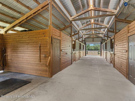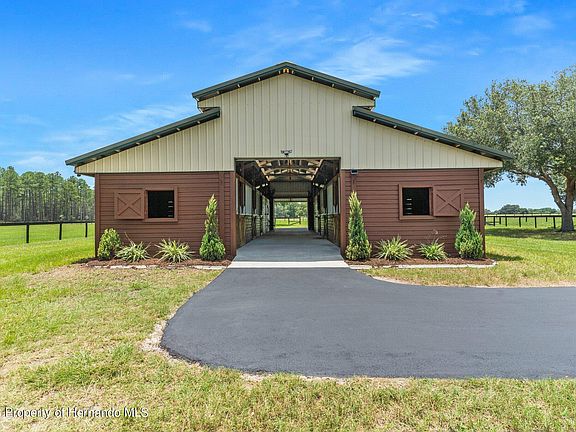 Active under contract. accepting back ups DREAM EQUESTRIAN 10-ACRE ESTATE PROPERTY. this one has it all!! Large, immaculate, well-maintained, move-in ready!! STUNNING HOME!! Completely updated and upgraded!! 4 bedrooms + 3 bathrooms + 3 car garage + private self-cleaning pool with feature wall and waterfall + incredible outdoor covered living space which is great for entertaining + IMPRESSIVE TONGE AND GROOVE STABLES with large center-isle (84 x 36) with 6 clay-floor matted stalls (12x12) with fans and auto water + tack room/office with A/C + feed room + workshop with w/d hookup and hot water + inside washrack + roll up garage doors on both ends of the center isle + covered trailer/equipment parking + RV hookup + all nestled on 10 acres of gorgeous, green, high and dry pastures (4 paddocks with shelters + auto water + small pasture) + board fenced with no-climb fencing + electric gated entrance + paved driveways + whole house generator with owned 500 gallon propane tank!! BRAND NEW ROOF April 2023! 2,942 sq ft living; 4,406 total sq ft. High ceilings (10' with 11' tray) + OPEN floor plan!! Absolutely stunning Alexander Custom Home with center-pool design and separate guest quarters or in-law suite! Formal living room + large family room + formal dining room + breakfast nook + extra large laundry room! Every inch of this property is in MINT condition inside and outside! It is LOVED and CARED for in every way! Drive into the property through the gorgeous gated entrance and follow the paved road up to the home and stables! Walk into the grand double door entrance and feel the how spacious, light and bright this home feels with its high ceilings, large glass windows and doors...yet the home feels so private as you don't see any neighbors! The home is completely upgraded with large ceramic tile floors throughout the home; no carpet!! Plantation Shutters and custom window treatments! The large upgraded kitchen is open to the family room with 42'' real wood solid maple, soft-close cabinets + granite counter tops + spacious breakfast bar + extra large serving counter with extra cabinets with pass through window to the outdoor kitchen bar! The kitchen also offers a large center island, all new upgraded stainless steel appliances to include built-in double convection ovens, induction cooktop, dishwasher, microwave and beverage refrigerator! Large mitered window overlooks the pool from the kitchen and breakfast nook with beautiful pool and pasture views! Split floor plan gives the master suite its privacy! The master suite is spacious with beautiful pool views, double walk-in closets, ensuite bathroom with new designer tub, real wood cabinet with dual sinks, Quartzite counters, private toilet, and spacious walk-in shower with tumbled marble floors!! All the bathrooms are remodeled with designer faucets, lighting, new real wood cabinets, ceramic tiled walk-in showers, Quartzite and marble countertops! Gorgeous sunsets over the pastures with long-range views! GREAT LOCATION in the desirable Twin Lakes area in Brooksville! 10 minutes to I-75 or 589 (Suncoast Parkway/Veteran's Expressway) for easy and quick access to Tampa and Ocala! 1 hour to the World Equestrian Center, Florida Horse Park. 15 minutes to endless riding Trails! 40 minutes to Tampa International Airport and everything Tampa Bay has to offer including TOP US BEACHES! Enjoy Historic Downtown Brooksville for cafés, restaurants, shoppes, art and craft shows, festivals, music on the square