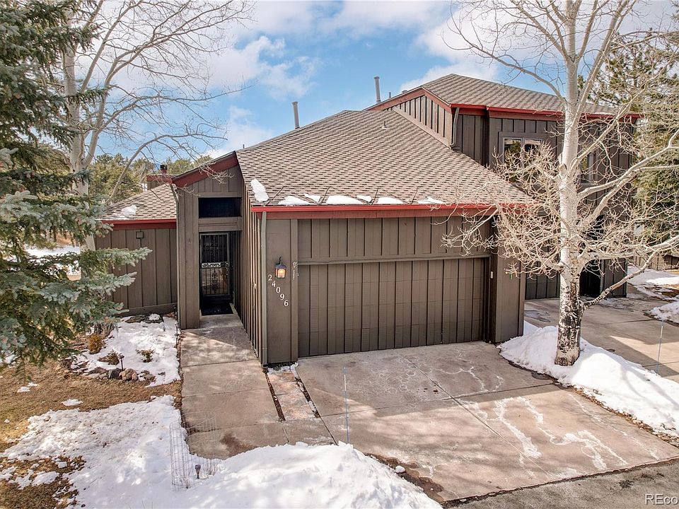 Have you ever imagined waking up to the picturesque foothills of the Rocky Mountains? Well, your dreams can now become a reality! Discover this inviting townhome nestled in the desirable area of Genesee, boasting million-dollar views of Mount Evans. The main floor provides ample living space, highlighted by soaring ceilings adorned with exposed beams, large picture windows, a wood fireplace, and a sprawling deck overlooking a serene meadow - perfect for entertaining guests or enjoying quiet moments with loved ones. The kitchen will add to your delight, featuring hardwood floors, granite counters, and a charming breakfast bar. Retreat to the spacious primary bedroom that boasts vaulted ceilings, abundant natural light, and an ensuite bathroom with a sizable walk-in closet. If you need additional space, the lower-level family room is a cozy retreat, featuring high ceilings, and a pellet stove. Just around the corner is an extra bedroom and full bathroom, and a large non-conforming bedroom with generous storage space. The attached two-car garage provides access to the attic with even more storage space. Genesee encompasses an impressive 2,000 acres, with 1,200 acres designated as open space, offering 12 miles of hiking trails. Wildlife enthusiasts will relish the opportunity to see elk, deer, bluebirds, and hummingbirds, all of which inhabit the area. A short stroll away is one of the three clubhouses, offering access to various amenities. Just 15-20 minutes to Denver! Don’t let this opportunity slip away - schedule your showing today and experience the splendor of mountain living!