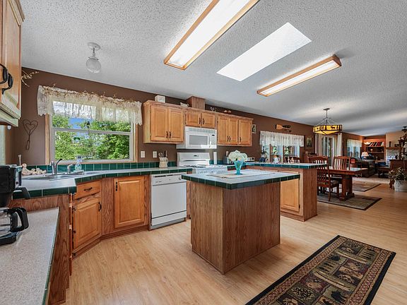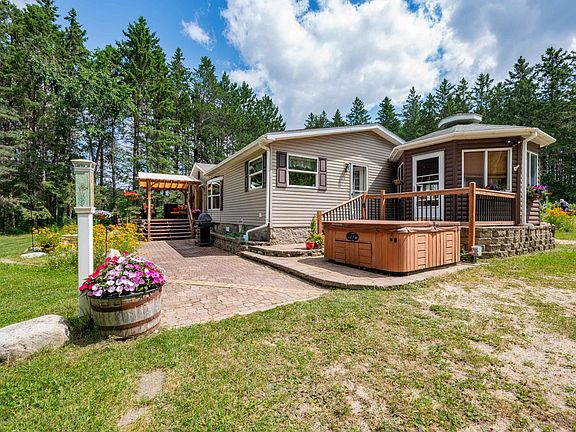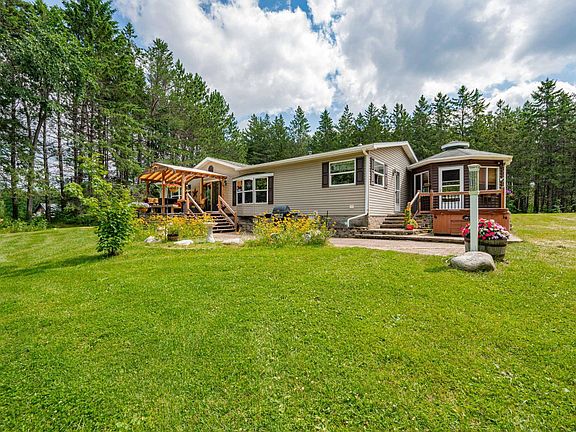 Snaptail Lake home for sale!! Beautiful & private 3.76 acre lot with 253 feet of level, sand lake frontage and a exceptionally nice sauna at the waters edge. The home has a great open concept living space with views of the lake. You'll appreciate the large kitchen and gas fireplace with builtin's. The primary bedroom offers a walkin closet and full bath. Outside you'll find pretty gardens, a green house, a square log bunkhouse, and large garage with a heated shop. Plus, a darling gazebo off the side deck. This property has so much to offer!!