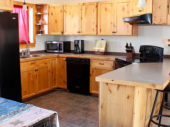 If your looking for a tiny home that's adorable and just a bit out of town w/ city services...look no further this is the home for you! Built in 2011, open concept w/ a large kitchen w/ knotty alder cabinets w/ lower pull-outs, pantry & large breakfast bar! Both bedrooms have large closets & built-in bookcases. Large fenced yard w/ two sheds plus plenty of room to built a garage!Home is built on a monolithic slab w/ in floor radiant heat.