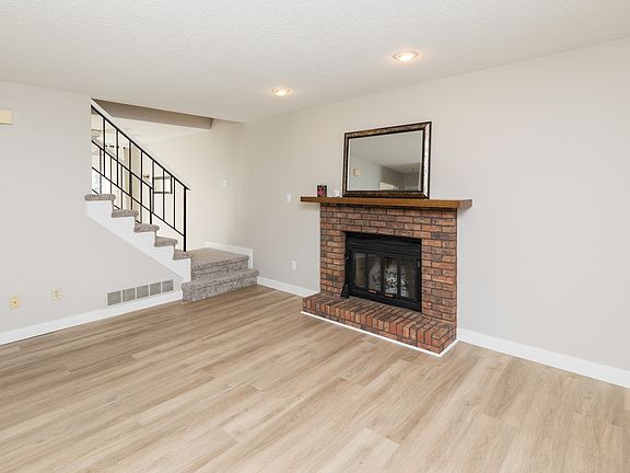 Updated half bath and wet bar (awesome) lead to kitchen and dining room. Open space perfect for entertaining with breakfast bar and newer cabinets. Two bedrooms upstairs with closets. Master boasts a balcony. Beautifully updated full bath with tile shower. Basement finished for extra entertainment area, playroom, or home office. Large private back deck has a bonus poured concrete pad just made for relaxing with friends and family. This is a desirable end unit that also has new 2nd concrete parking space next to garage.