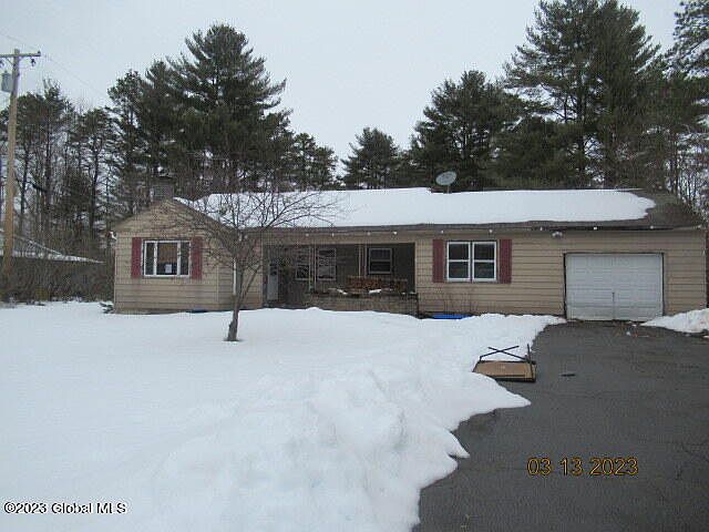 Ranch style home built in 1951 and offers 1168 sq ft, 3 bdrms and 1.5 baths with 1 car attached garage situated on 0.67 acres in Queensbury CSD. Private septic, public water, partial basement, and a fireplace.