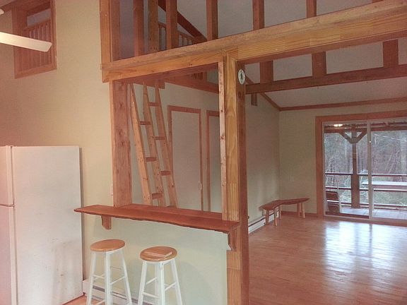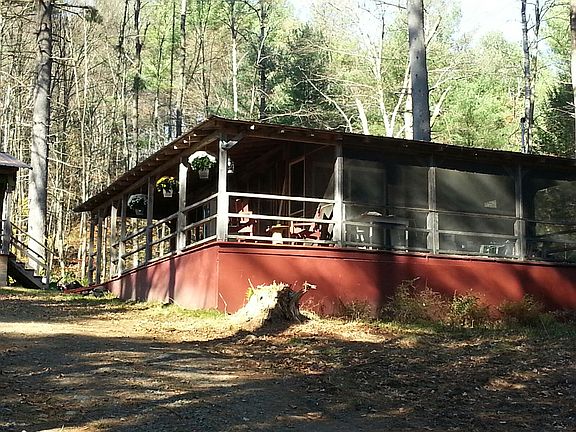 Sleep outside 6 months of the year on your screened porch, watch the sun rise, listen to the stream, feel wrapped in nature. Year round or seasonal living in this well cared for magical wilderness compound. Medicinal perennials on site will support an herbal business. Nearly 6 acres, located in an upscale neighborhood on a dead end street, this retreat is tucked away, surrounded by forest and abutting the Deerfield River. A circular driveway provides access to 2 cabins, with sauna and fire pit, 4 organic gardens, plus cleared camping space, with a pavilion. Freshly painted interior, home energy audit 2015, bathroom with soaker tub and new bamboo floors, wood stove heat w/electric back up, ladder to loft guest area. Massive shed is 12x16 w/new roof 2016, sauna 2016, new 3 BR septic 2014, personal emf testing, 2nd cabin no plumbing. Newer washer + hot water heater in separate utility room. Picture yourself here, enjoy picking blue berry & black berries. Best closing date is June 6.