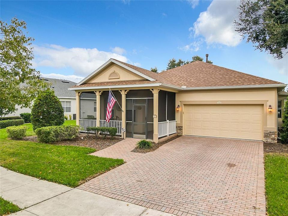 Stunning FORMER MODEL HOME (2 Bedroom plus Den/Study) on an unusually large OVERSIZED LOT just under ¼ acre (.23 acres) backing up to a green area. This immaculately maintained home has an incredible number of CUSTOM HIGH-END FINISHES throughout including CROWN MOLDING, archways, CUSTOM DESIGNER WINDOW TREATMENTS, high ceilings with extra RECESSED LIGHTING, CUSTOM BUILT-IN CABINETRY, Bamboo Wood Floors, CUSTOM BUIILT IN BOOK SHELVES IN DEN/STUDY, GAS Range, Hot Water Heater and Dryer. ROOF 2022 AND A/C 2016. This home has a screened in front porch as well as an oversized rear porch (26 X 16) with windows and A/C unit accessed by 2 sets of TRIPPLE SLIDING GLASS DOORS. There is also another rear covered porch dedicated for grilling & cigar smoking. The Large Master Bedroom has HIS & HER closets and bamboo wall coverings. Master Bathroom has a soaking tub and Shower with Bench Seat. The Eat-In kitchen has a gas range and a CUSTOM Padded Bay Window Seat and custom glass top dinette table. Garage has a dual storage "pully" system. This GOREGEOUS HOME is located within Trilogy a spectacular 55+ Manned Guard Gated Community full amenities. The Magnolia House is an award-winning 57,000 sq. ft. clubhouse which hosts a variety of entertainment, social connectivity and educational opportunities. Outdoor community resort style, heated lap pool and spa, indoor pool, fully serviced restaurant and bar (with happy hour and catering available), two fitness centers, golf simulator, billiards, culinary studio, tennis court, bocce ball, pickleball, walking trails, dance studios, poker lounge, dog park a long list of exercise classes, concerts, shows and much more. Be a part of luxury living in this exclusive community. The HOA fees include lawn/shrub maintenance, basic cable w/premium channels, high speed internet, landline, home monitoring, guard gated front entrance and amenities.