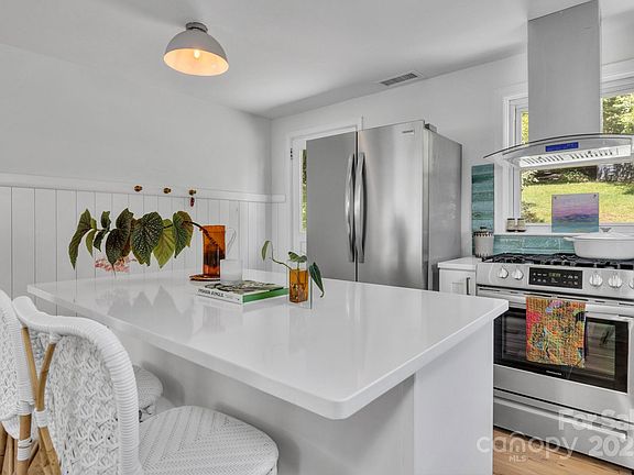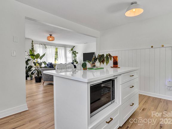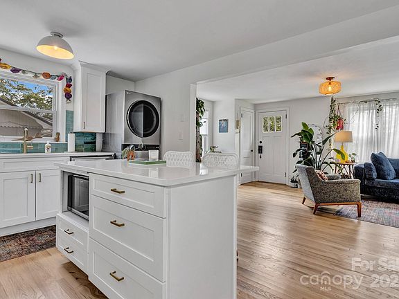 This beautiful mid-century modern ranch was remodeled in 2023, ideally located in the heart of West Asheville Located just ½ mile from Malvern Hills Park & only 1.5 miles from the vibrant shops and restaurants of Haywood Road. 0.26 acre lot is set back from the road for added privacy. This home seamlessly blends timeless character with modern updates. Inside you're welcomed to an open-concept floorplan filled with natural light. The kitchen is a true showstopper, featuring sleek white quartz countertops, an oversized island, handmade blue-green clay imports tile backsplash, stainless steel rrigidaire appliances, and a gas range with a vented hood—perfect for both everyday living and entertaining. Original hardwood floors have been restored w/ a natural finish. The updated bathroom includes a stylish new tile floor, a reglazed tub, and stacked subway tile surround. 2023 upgrades include a brand-new HVAC system, gas furnace & hot water heater, ensuring comfort and efficiency year-round.