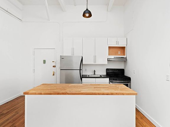 This bright and spacious newly renovated four-bedroom, one-bathroom residence offers a private roof deck, incredible natural light, Northeast exposures and soaring 13" ceilings. The open, modern kitchen features wood countertops and island, white cabinetry and stainless steel appliances including an oven, fridge and microwave. Contemporary touches are found throughout the expansive home with modern renovated bathrooms and hardwood flooring. This residence features two living room spaces, perfect for separate dining and living. Building amenities include a laundry room, key fob bike room and super. 241 Bedford is a 4-story building located in the heart of North Williamsburg, one of Brooklyn's most desirable neighborhoods celebrated for its modern boutiques, dining and fitness such as Whole Foods, The Apple Store, Equinox, and more. The L train is 3 short blocks away, and Northside Ferry Terminal is nearby.